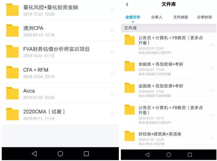 通过对方发来的资料库截图,燃财经发现这两家机构的课程库品类十分齐全,包括高顿财经的CFA、ACCA等财经考证类课程;中公教育、粉笔网的公考课程;考虫、新东方等机构的雅思、托福、GRE语言课程;少年得到的小学语文课程等。
