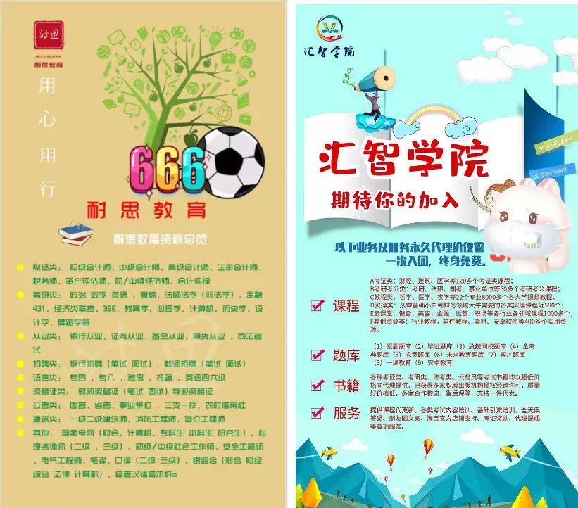 耐思教育和汇智学院的招聘代理海报