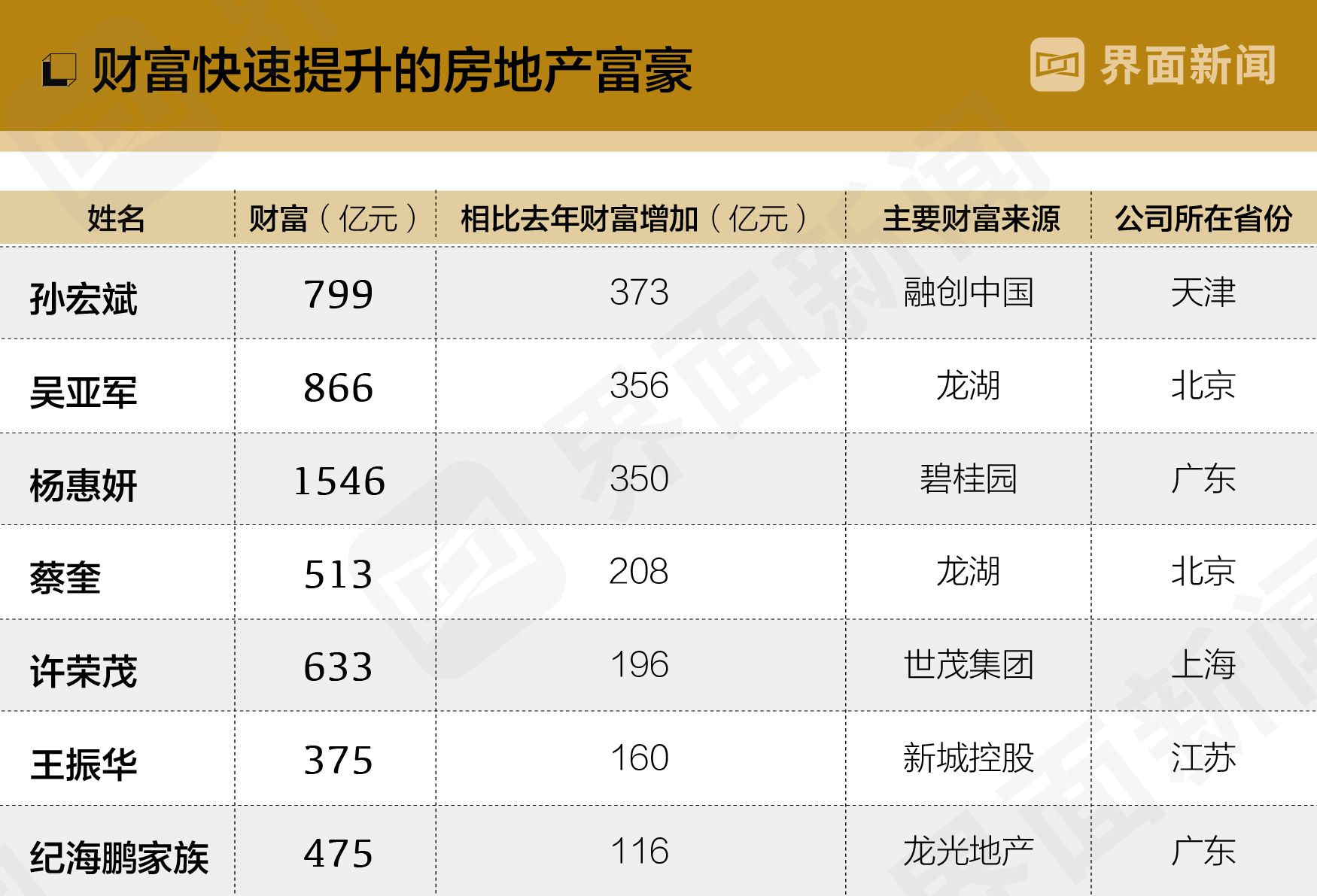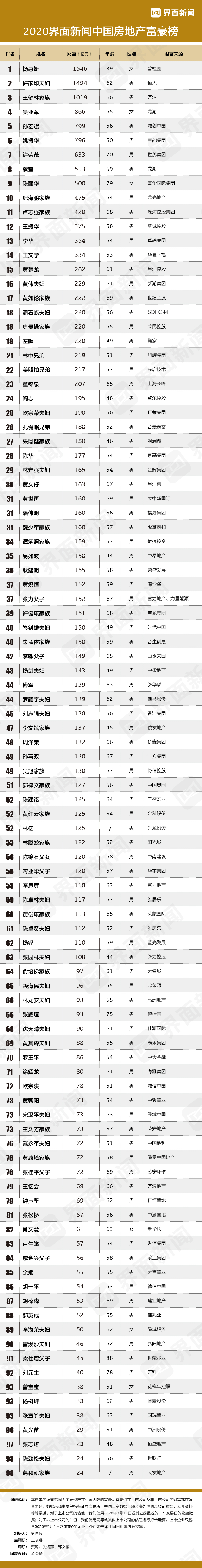 界面新闻第三次推出中国房地产富豪榜,在2020中国房地产富豪榜单上:
