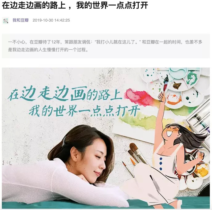 15年来,在几代人的成长中,豆瓣通过满足用户精神文化生活消费需求,对人的成长塑造形成比较长远的影响力,最终改变了他们的人生轨迹。在“我和豆瓣的日记”页面下,很多用户在分享和豆瓣的故事,有用户靠豆瓣出书并走上职业作家的道路,有的用户成功举办个人画展,插画师欢儿欢-Queenio在豆瓣待了13年,她说:“和豆瓣在一起的时间也差不多是我边走边画的人生慢慢打开的一个过程。”有用户出品了自己的影片,也有用户找到了自己的另一半,豆瓣与用户彼此成就。