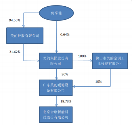 本次交易完成之后,合康新能的控股股东及实际控制人均将发生变更。美的暖通将成为合康新能控股股东,美的集团将成为合康新能的间接控股股东,何享健将成为合康新能的实际控制人。