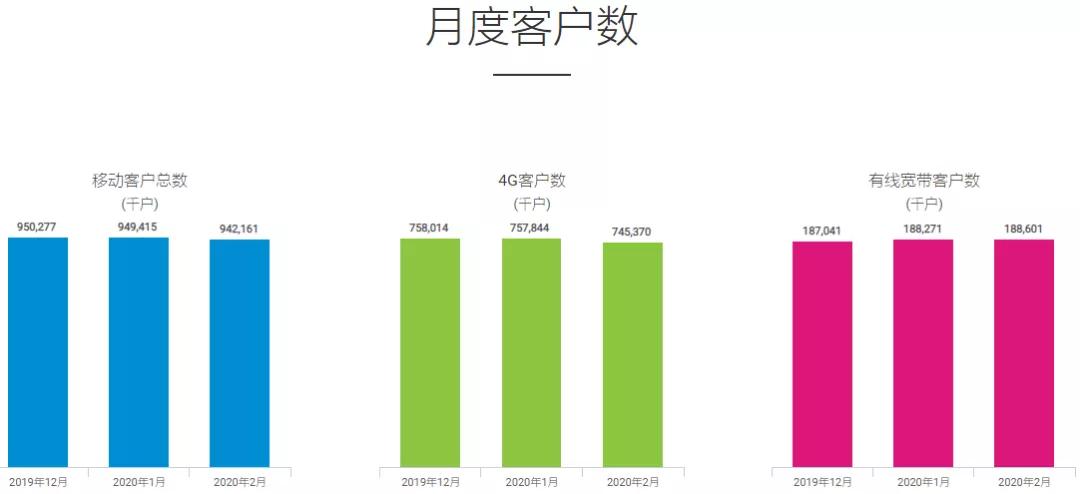 从上述数据简单看,4G客户数的下滑超过1千万,而有线宽带客户数的增长也大幅度放缓。面上看,受到新冠肺炎疫情的影响较为显著。