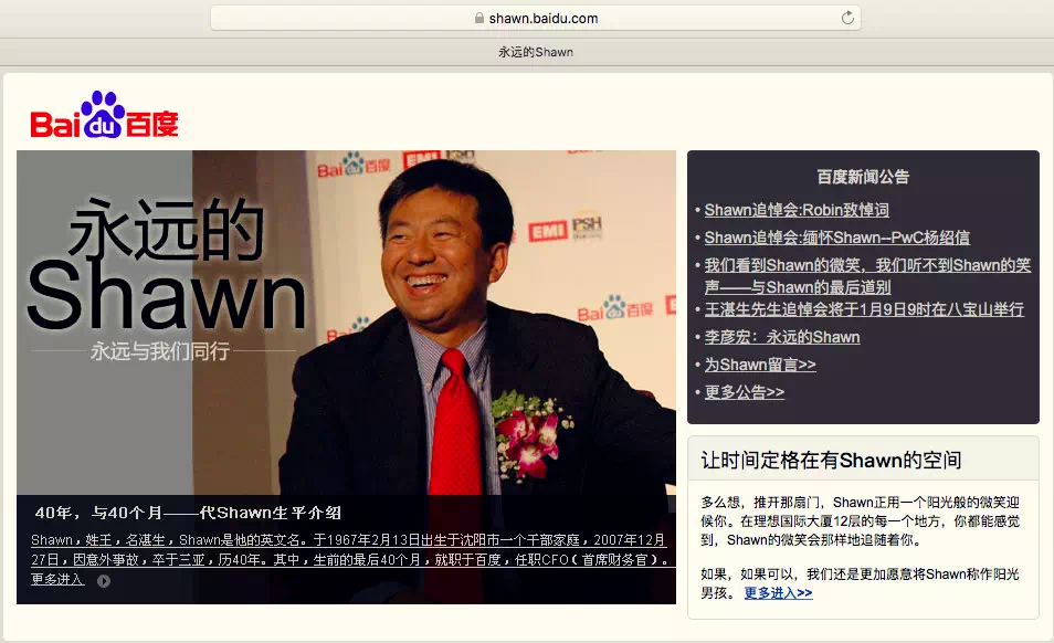 “2008年,是我最难过的一年。”李彦宏至今依然怀念那位老朋友:原百度CFO王湛生,在2007年年底意外离世。