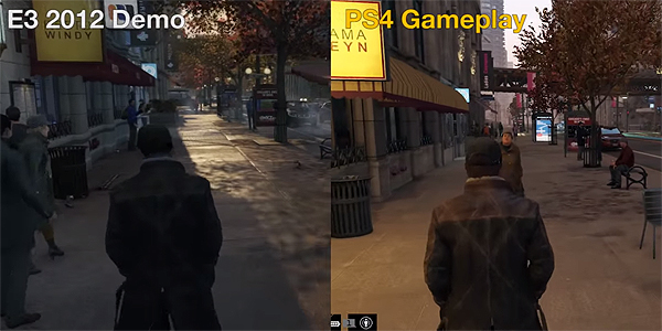 育碧原来为《看门狗》起的广告词是“下一代从这里开始”,原计划用它来替代《刺客信条(Assassin’s Creed)》成为其年度游戏。没想到游戏发行后,玩家下载到的版本和预先展示的版本看起来完全不同,事实上它们确实是不一样的。育碧承认他们不得不降低游戏的渲染能力,这样游戏才能够在主机上顺畅运行。