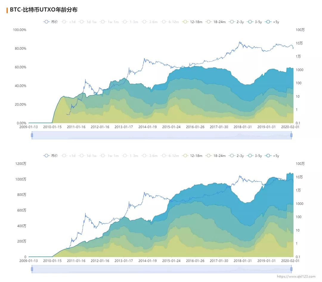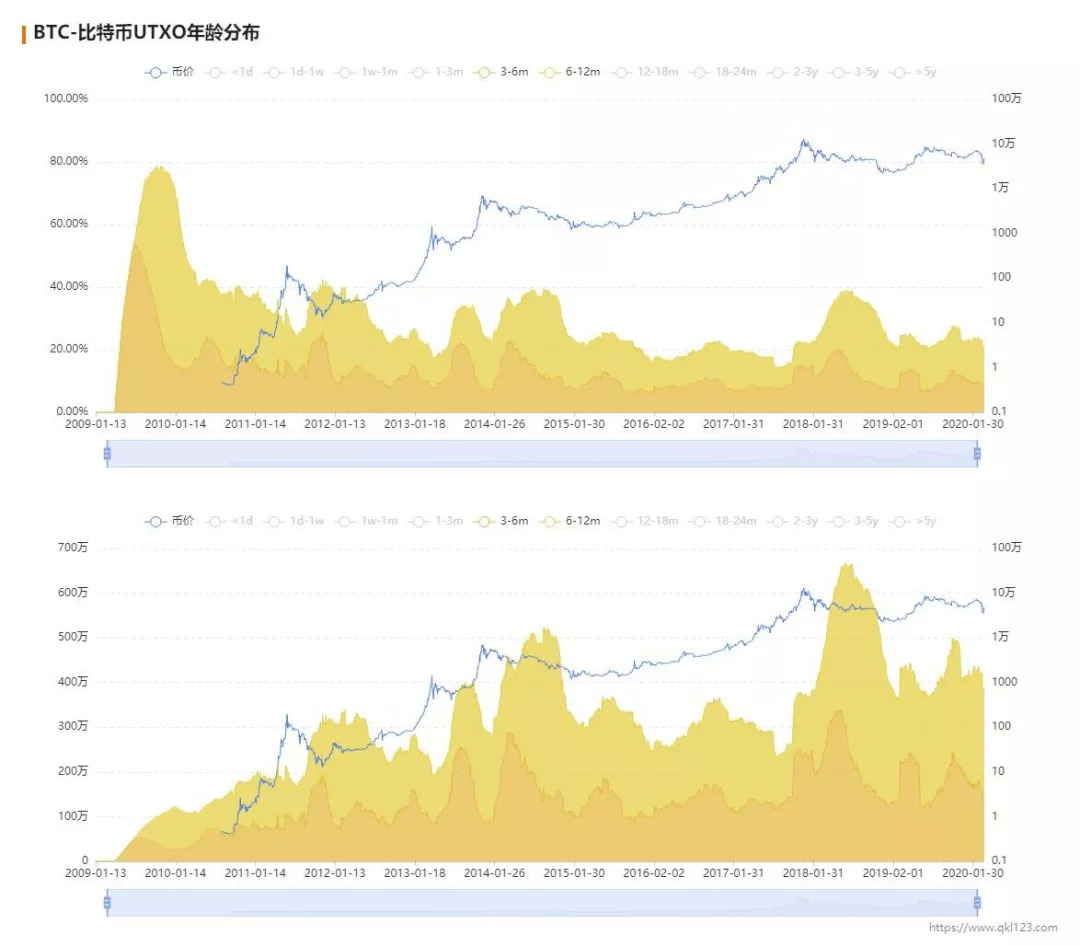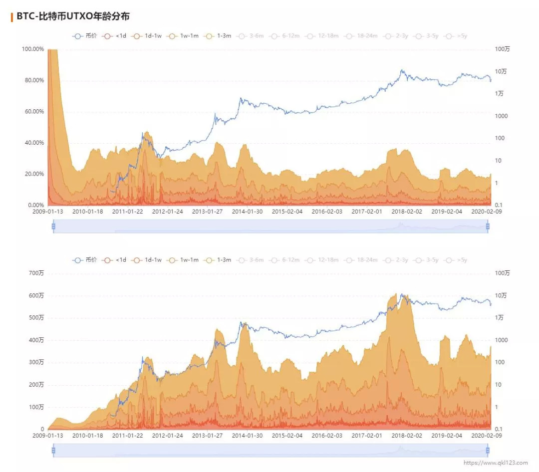区块链数据网站QKL123在文章《比特币UTXO年龄分布:市场筑底中?》对这三个指标数据有一个专业研究,我们接下来介绍该研究。