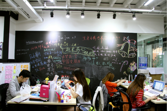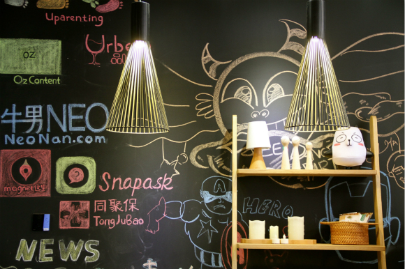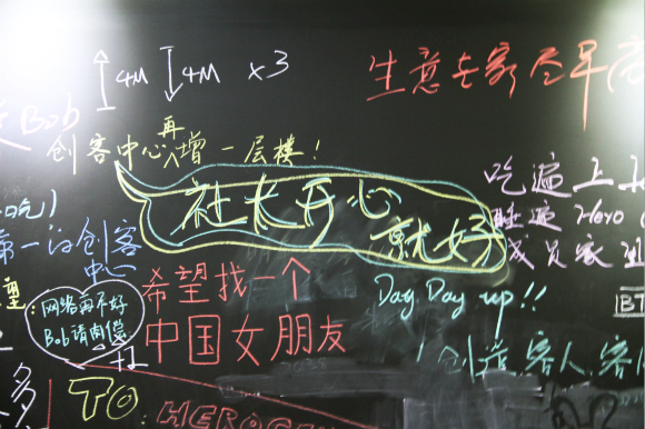 这两面黑板墙无声地述说着在这个空间里,不同的团队在一种轻松的氛围中工作、生活、成长。