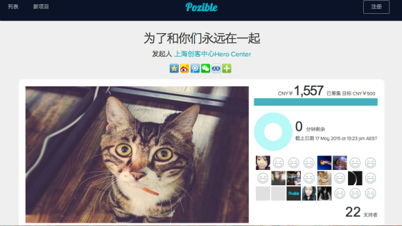 除了业务合作,还有不少有趣的故事。比如Pozible在创客中心内为猫咪Cooper发起的众筹。“在一个月的时间里,Pozible筹集了1557元,足够让这个小家伙在创客中心衣食无忧。”Pozible项目经理林青华说。
