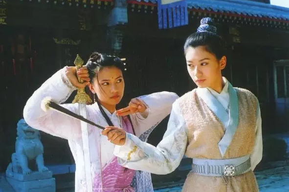 到了2002年贾静雯和高圆圆相识在一部《倚天屠龙记》中,一个扮演赵敏,一个扮演周芷若,那才是两位大美人的真正颜值巅峰,先放几张图片你们感受下: