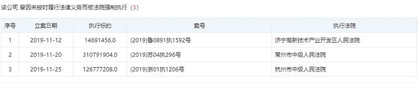 现在的如意时尚已经卷入了多个债务纠纷。天眼查数据显示,在2019年9月-12月期间,如意时尚被法院强制执行三次,共涉及标的4.5亿元。其中有一起,是被山东经达因债券转让合同纠纷上诉至山东省济宁市中级人民法院。最终,法院冻结了如意时尚1.15亿元的存款。