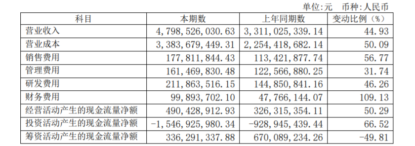 营收快速增长的同时,璞泰来也面临着营业成本剧增的压力。