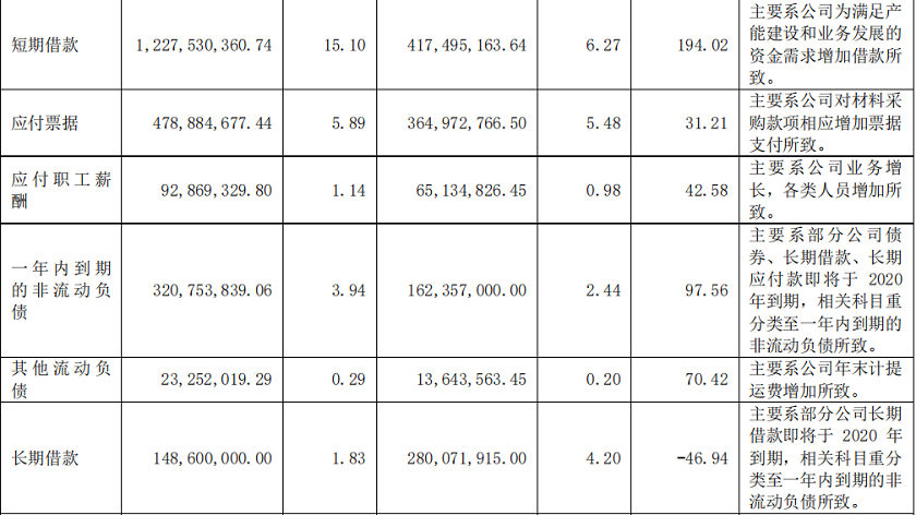 负债方面,璞泰来2017年-2019年资产负债率分别为41.16%、53.14%、55.18%,呈逐年上升。报告期内,公司的短期借款为12.28亿元,同比增长194.02%,主要系为满足产能建设和业务发展的资金需求增加借款所致;公司的部分长期借款、长期应付款项即将于2020年到期,致使公司一年内到期的非流动负债同比增长97.56%。