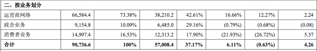 按业务划分来看,2019年,中兴通讯运营商网络实现营业收入665.85亿元,政企业务实现营业收入91.55亿元,消费者业务实现营业收入149.97亿元。