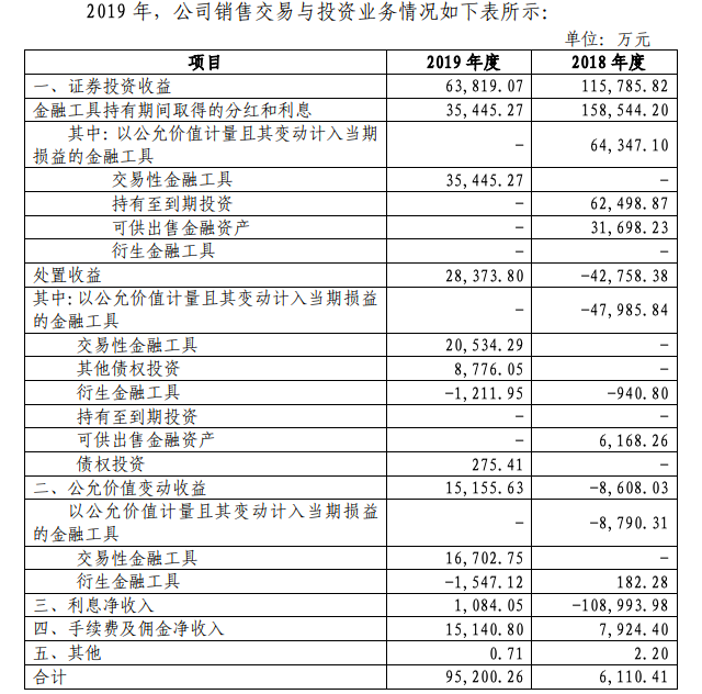 按照国海证券的划分,证券自营业务与金融市场业务归属于销售交易与投资业务。但从细节上看,该项业务营收的大幅增长主要是由2018年过10亿的利息净亏损在2019年转盈所引发的。