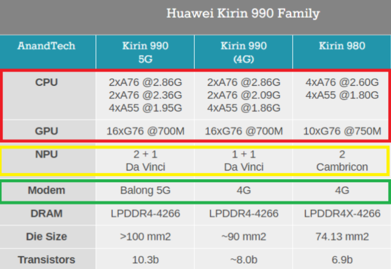 寒武纪话只说了一半,事实上,华为正在用自研NPU替代寒武纪的NPU。在华为海思2019年最新发布的麒麟990芯片中,NPU使用了华为自研的达芬奇架构,而在上一代的麒麟980芯片中,NPU使用的还是寒武纪的方案。