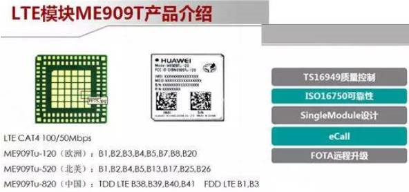 当时该款产品已经具备包括4G在内的多种制式,支持全球导航卫星系统,支持全球运营商准入协议,支持欧盟eCall(紧急呼叫),支持FOTA(空中远程固件升级)等功能。