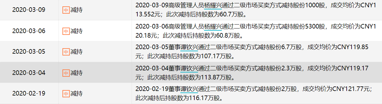 2020年以来,欧派家居发生了9次董监高减持事件,近期减持尤为密集。3月4日至9日,连续四个交易日,欧派家居董事谭钦兴、董秘杨耀兴合计减持了4次,减持价格在113.55元/股-120.18元/股之间。