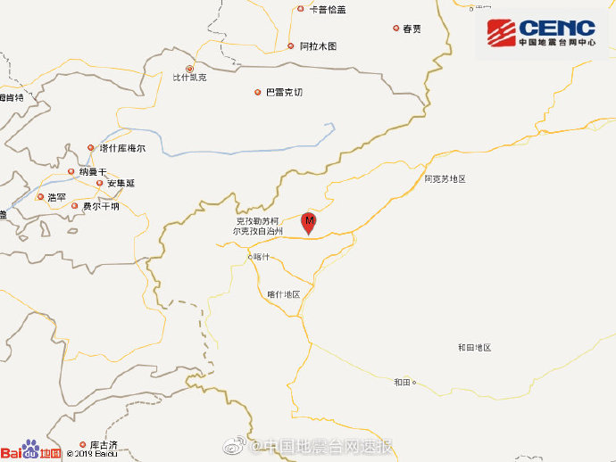 新疆克孜勒苏州阿图什市发生3.2级地震,震源深度8千米
