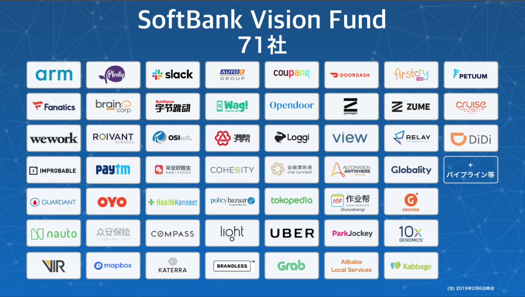 2020年2月12日,软银发布截至2019财年前三季度财报,截至2019年12月31日,软银基金部门投资估值损失7278亿日元(约65.6亿美元)。