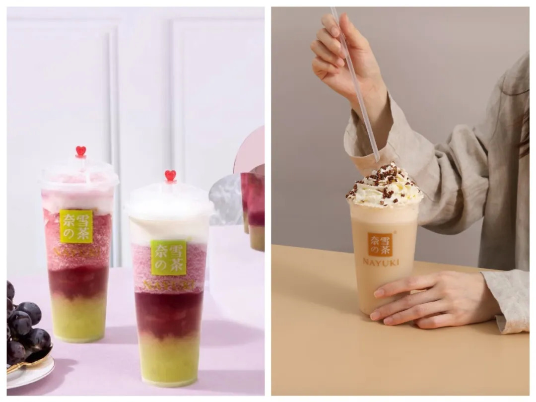 值得注意的是,奈雪常规霸气芝士鲜果茶的奶盖可更换为酸奶,7分甜奇异果系列最突出的当数奇异果酸奶捞。酸奶与茶的搭配受到更多品牌的青睐。