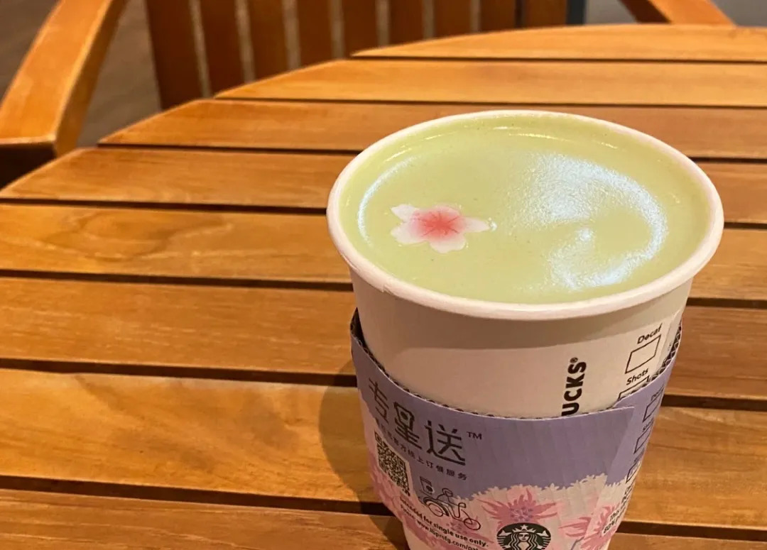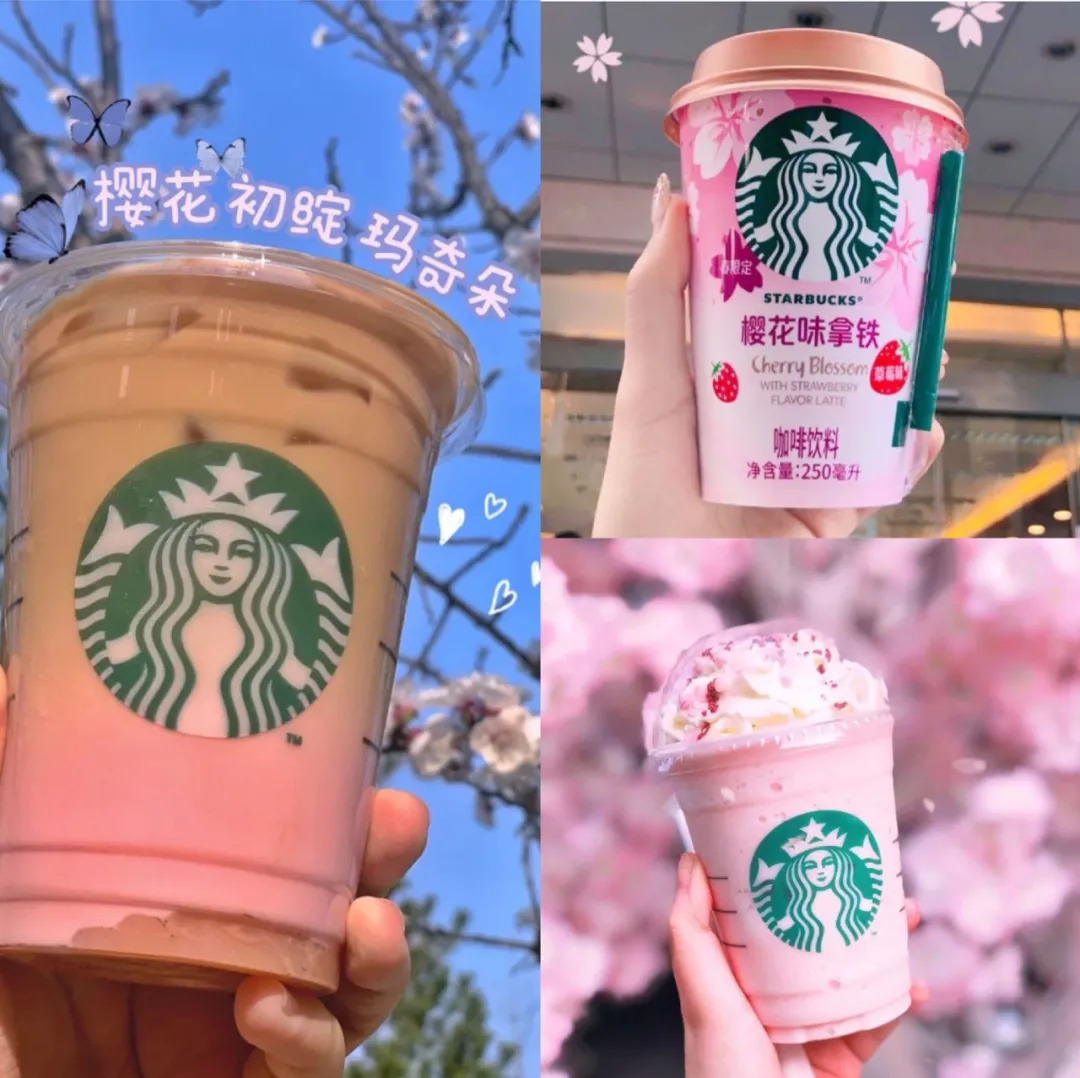 还有品牌在进行了融合,星巴克推出樱花初绽抹茶拿铁,还上线专属樱花杯套。