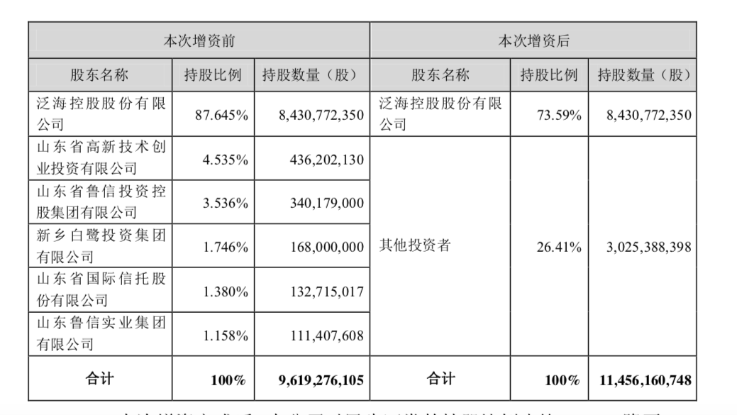 增资完成后,泛海控股对民生证券的持股比例由约 87.65%降至约 73.59%。