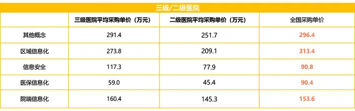 一方面,相比二级医院,三级医院更受重视,预算更为充沛。在CHIMA的调查报告中就提到,三级医院未来两年的信息化建设平均规划投入为1667.69万元,是三级以下医院平均值(496.69万元)的3倍多。在采购时往往可以选择性能更好且功能更为齐全的方案。当然,其单价也就有所差异。另一方面,如前所述,在区域信息化中引入大数据的往往是三级医院,对于信息安全的要求也相对更高。因此,这也导致了二、三级医院在这两个项目中单价上明显的差异。