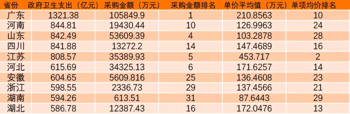 作为经济和人口大省,山东在各项系统单价中都没有进入前两位。实际上,多数都排名偏后。尽管在采购总额上高居第4,但更多是因为项目数量的优势来拉高了总额。一方面说明当地的投资较为平均主义,另外一方面可能一定程度上也体现了当地医疗信息化水平的“大而不强”。考虑到山东的经济水平,我们认为其后续还有较大的成长空间。