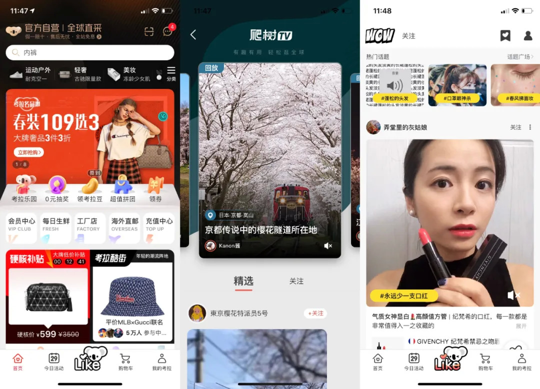 加入阿里大家庭后,考拉希望成为海外潮流的意见领袖。例如,已上线的“爬树TV”,在考拉APP首页拥有核心入口位置,频道内将以直播、短视频、语音及图文的多内容形式,展示海外的生活方式与商品内容。