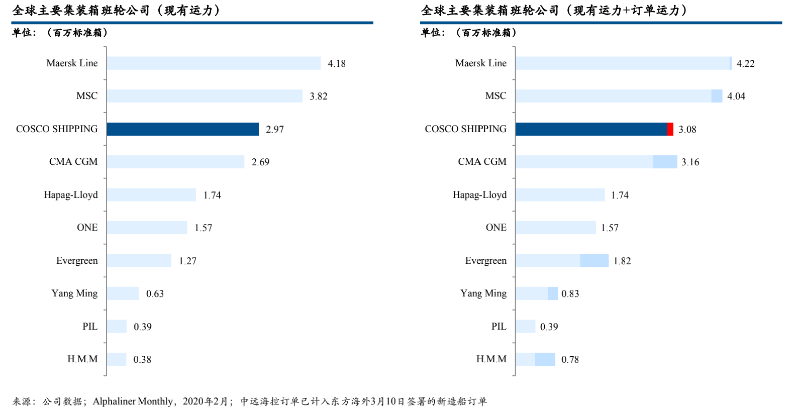 其次,中美第一阶段贸易协议的签署,消除了部分因贸易摩擦升级带来的不确定性。最后,2020年市场集装箱船舶运力净增速将进一步放缓,船舶订单占存量运力的比例仍处于历史低位,市场供给侧压力有望进一步缓解。
