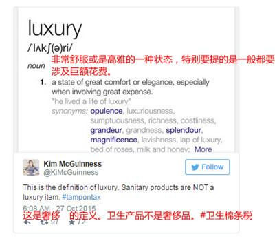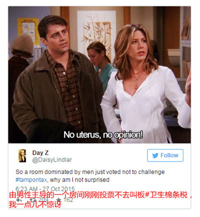 正如预料的那样,女性的声音得不到重视,卫生棉条依然被划到了“奢侈品”行列。