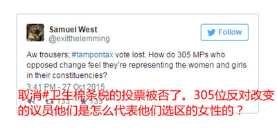 那些投票反对免去这一税收的,大多都是男性,他们从来都没为这一增值税买过单。