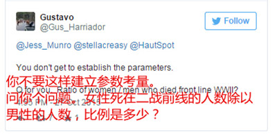 而这件事直接导致一个男网友将2个风马牛不相及的东西放在一起比较,那就是男性使用卫生棉条的比例和女性在二战中死亡人数的比例。