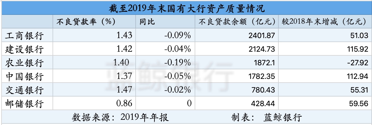尽管2019年各大国有银行的资产质量表现向好,但在不少大行的业绩发布会上,多位高层不约而同地提到2020年银行资产质量将面临承压的情况。