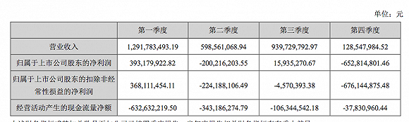 分季度来看,2019年四季度,东阿阿胶营收净利润出现大幅下滑,实现营收1.29亿元,归属于上市公司股东净利润为-6.53亿元,成为公司全年亏损的主要季度。