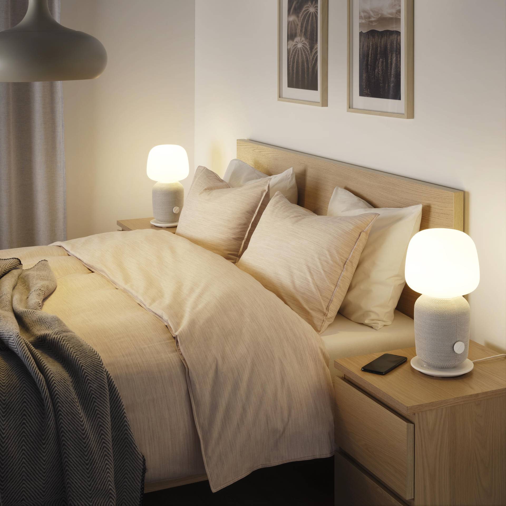 光线和声音都是营造温馨家庭氛围的重要元素,SYMFONISK 希姆弗斯 Wi-Fi台灯⾳音箱同时兼顾了了这两⼤关键元素,将台灯与音箱合二为⼀,可在播放⾼品质⾳频的同时营造温暖柔和的光影,带来⼀方光音缭绕的家居天地。