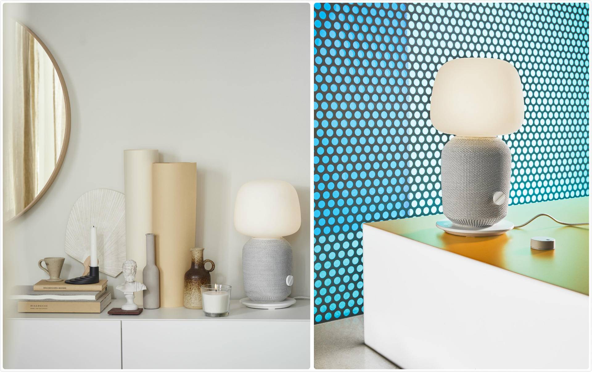 “ ⼀件单品,一条电线,两种功能。”宜家产品开发⼈员 Stjepan Begic 的形容简单到位。外形如蘑菇般的百搭造型还使之可与各种家居产品组合以装饰空间。