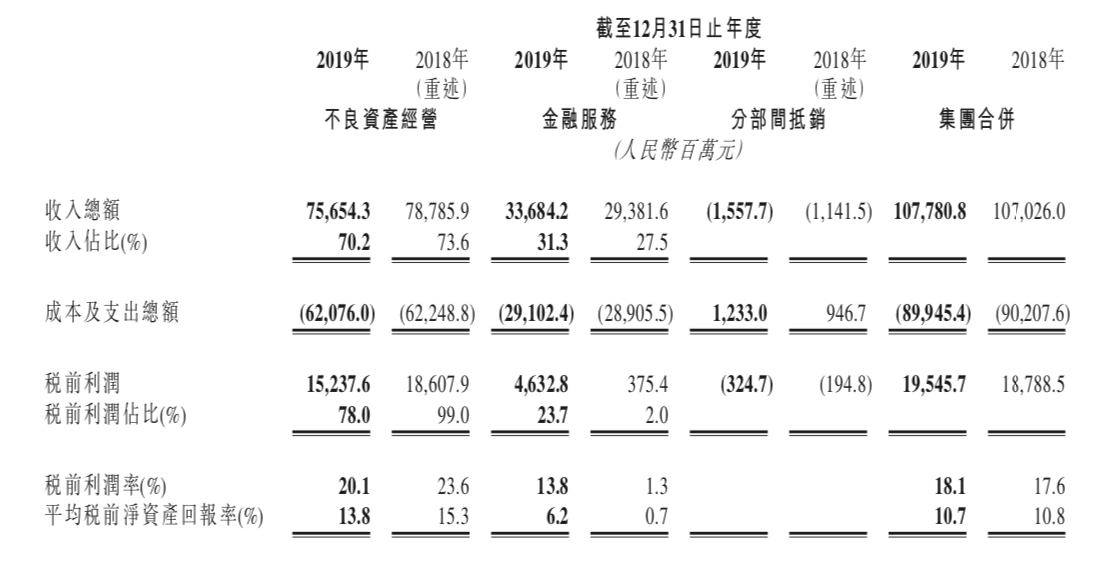 3月31日,中国信达(1359.HK)发布2019年年报,报告期内公司收入总额继续延续下跌趋势,同比下降2%至961.46亿元。但公司归属本公司股东净利润人民币130.5亿元,同比增长8.4%。