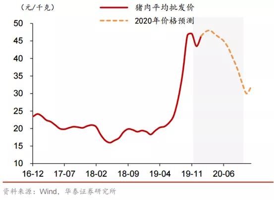 据华泰证券预测,根据生猪养殖周期,今年上半年猪价还处在筑顶过程,下半年随着出栏增加而较快回落。