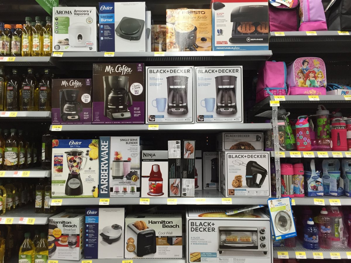 销售苏打水的货架上,还放置了一个出售的烤箱。与其他商店不同,沃尔玛的邻里超市只销售食品和日用品。