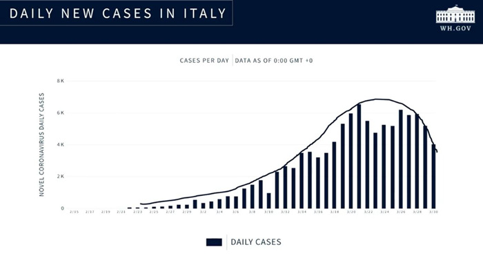 截至3月31日,意大利累计确诊病例105792例,死亡12428例,为全球确诊人数第二、死亡人数第一的国家。当天,意大利全国降半旗,为疫情中病亡的民众默哀一分钟。