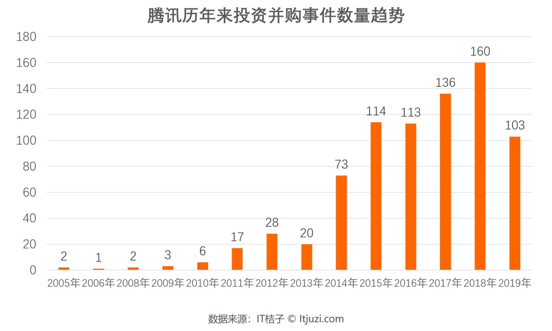 根据 IT 桔子数据,在过去 10 年间,腾讯投资超过 700 家公司,横跨海内外,行业涉及文化娱乐、游戏、交通出行、零售等多维度。这让我们不禁好奇,究竟是什么让一个以社交起家,曾经主要靠游戏变现的公司走上了比很多专业 VC 还要广、还要远的道路?