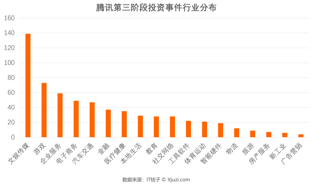在文娱领域,腾讯 7 年中参与投资笔数高达 139 家。比较知名的财新传媒、知乎、快手、哔哩哔哩 bilibili、微影时代 (微票儿)、百思不得姐、新世相、毒舌电影、斗鱼、虎牙直播、罗辑思维等项目,都已经成为腾讯的投资对象。