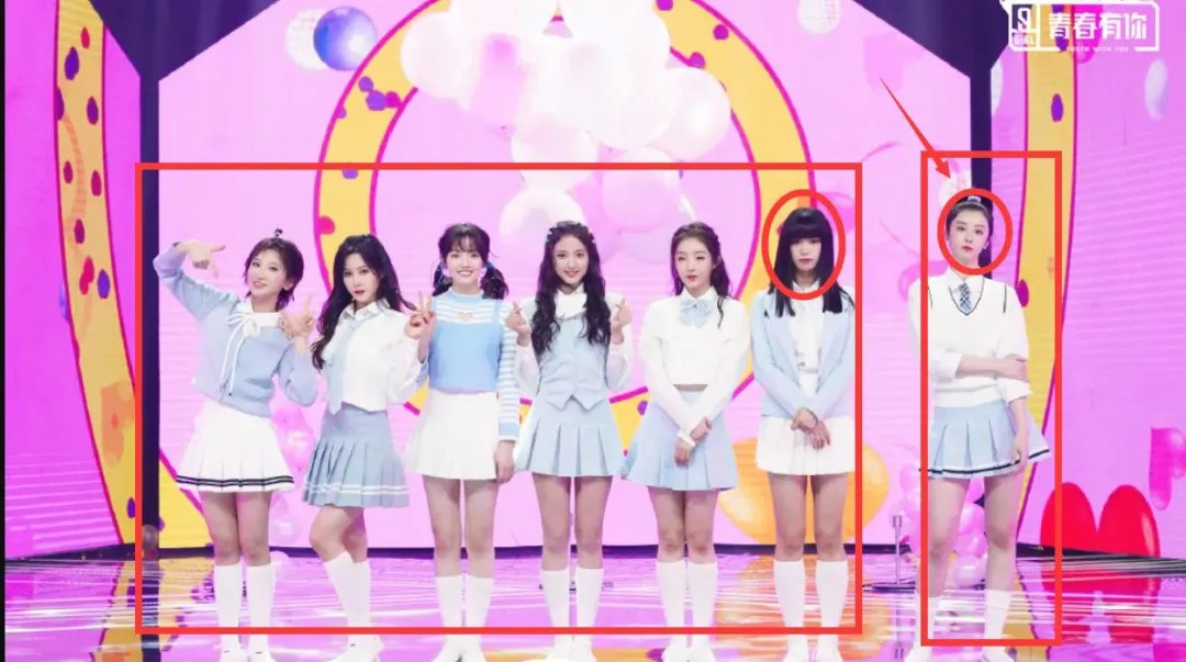 之后的小组训练,两人关系的“不和”再次被表现出来,一方说话时另一方“不爽”的微表情,公演照片中两人之间醒目的距离感,都似乎在强调“塑料姐妹花”的恶劣关系。