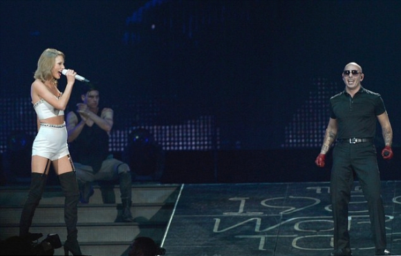 这一次,霉霉与Pitbull 共同演绎了后者与Ne-Yo的大热合作曲“ Give Me Everything”,两人在台上频频走动,将现场气氛推向高潮。