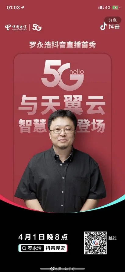 除了媒体曝光,还有实打实的平台流量。据传,日活4亿的抖音承诺给老罗的直播首秀亿次量级的曝光。同时在老罗直播的前一天晚上,各大品牌方的合作海报开始疯传预热,比如中国电信手机营业厅的启动画面就变成了这个微笑的胖子。