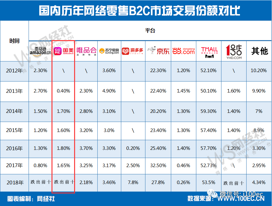 国美零售市场份额逐年下滑