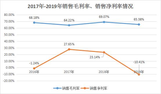 从盈利能力方面来看,据财报显示,2016年、2017年、2018年及2019年,猎豹移动的销售毛利率分别为68.18%、64.22%、69.07%及65.38%,基本保持平稳;同期,销售净利润为-1.24%、27.65%、23.14及-10.41%。其中,2017年至2019年连续三年销售净利率下滑,2019年甚至为负值,表明猎豹移动的盈利能力持续下滑。