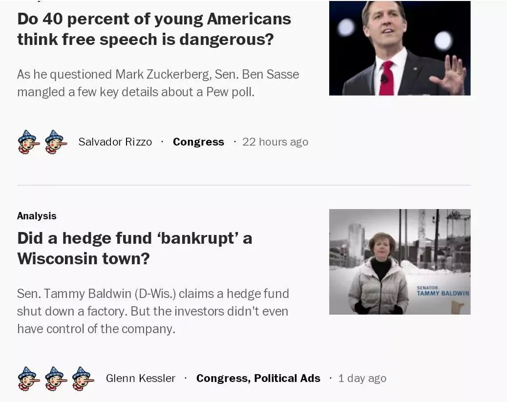 值得注意的是,事实核查新闻的诞生是以2008年奥巴马竞选美国总统为契机而诞生的。与传统意义上新闻刊出前的事实核查制度不同,它主要进行的是报道刊出之后的核查,是一种类似“勘误”、纠正错误的行为,意在揭发人物言论中的不实之处。因而其核查团队都具有较强的专业性。