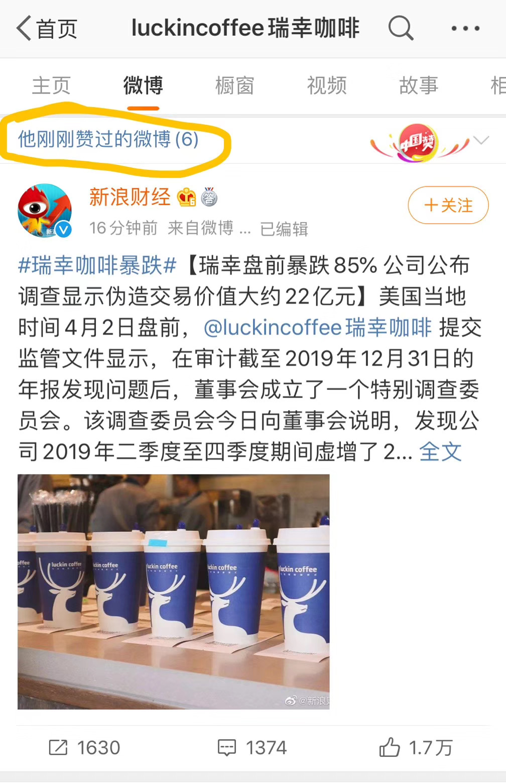 截止发稿,瑞幸咖啡没有回复界面新闻的置评请求。但瑞幸咖啡的微博账号,点赞了“新浪财经”关于这条新闻的微博内容。