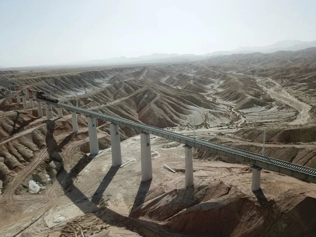 南疆地区另一个在建铁路项目——和田至若羌铁路,今年计划全线铺轨520公里,完成19个车站站房主体工程建设。